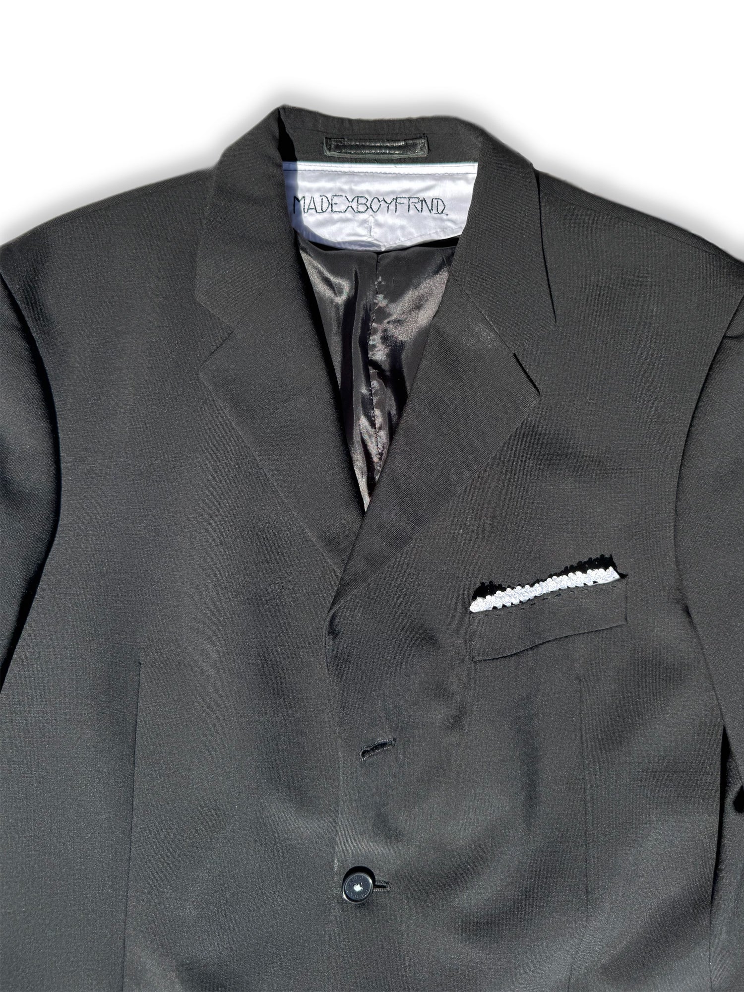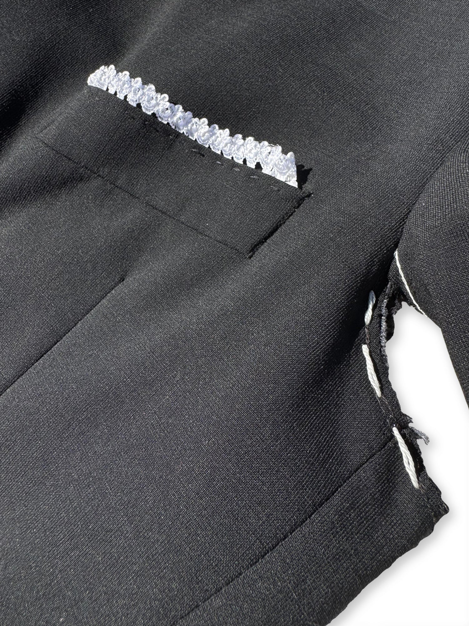 - 100% wool + silk, cotton, viscose, polyamide (train patches)